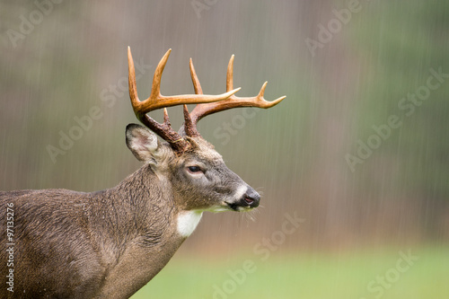 © Tony Campbell, Naklejka premium White-tailed deer buck in rain