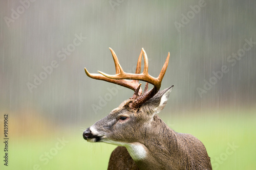 © Tony Campbell, Naklejka premium White-tailed deer buck in rain