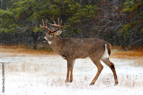 Obraz premium White-tailed deer buck in the snow in the forest in Ottawa, Canada