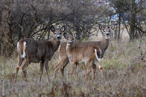 Fototapeta premium White-tailed deer family in the autumn forest in Ottawa, Canada