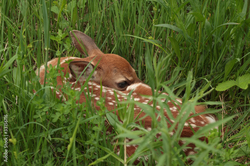 © Brian Lasenby, Obraz premium White-tailed Deer Fawn Hiding in a Meadow - Ontario, Canada