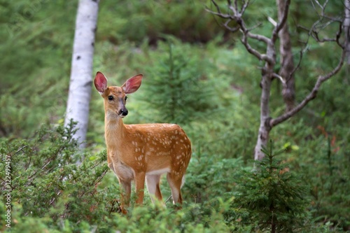 © Jim Cumming, Fototapeta premium White-tailed deer fawn in the forest in Canada