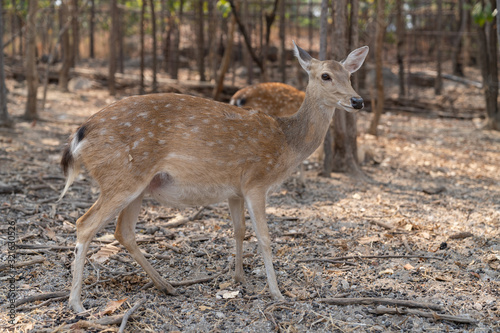 © RoBird, Fototapeta premium White-tailed deer fawn walking in forest in the autumn.