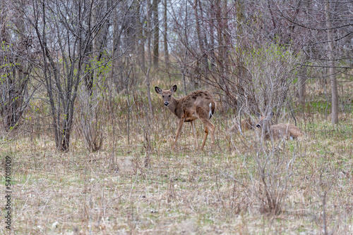 © Barbara, Fototapeta premium White-tailed Deer Feeding In The Woods In Spring