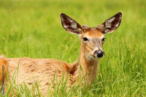 Fototapeta premium White-tailed deer lying in the grass