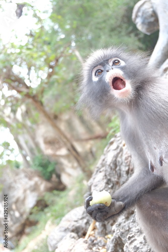 © Angkana, Obraz premium white tailed macaque