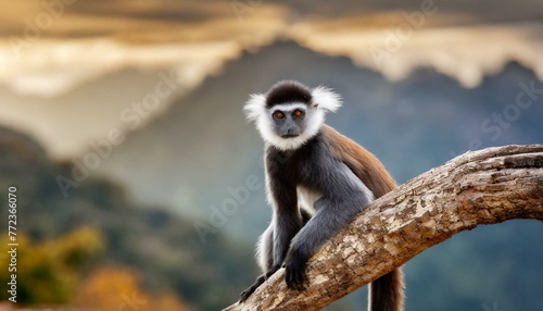 © Wonderful Life , Obraz premium white tailed macaque sitting on a tree