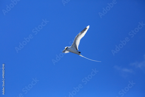 © aylerein, Obraz premium White tailed tropic bird flying over ocean in reunion island