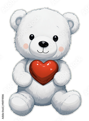 Obraz premium White Teddy Bear Holding Red Heart on a transparent background