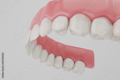 © piyaset, Fototapeta premium White teeth and healthy gums on white background.