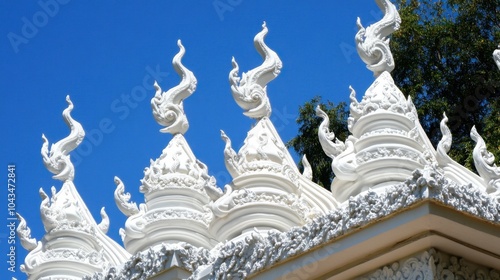 © Puttipong, Fototapeta premium White Temple Architecture against Blue Sky