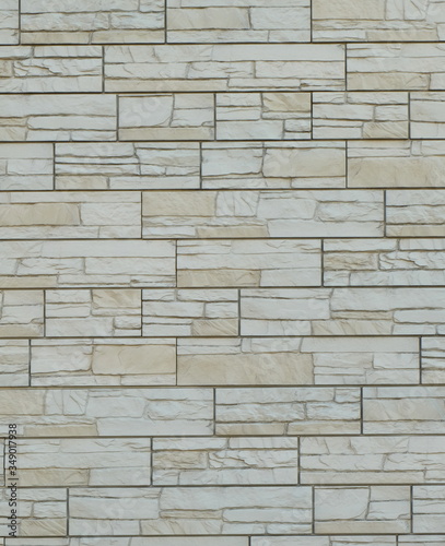 © Alena, Fototapeta premium white textured brick wall close-up, background