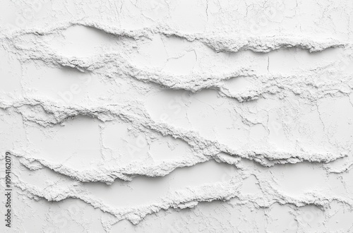 © Aleksandra, Fototapeta premium White Textured Plaster Wall with Cracked Pitted Surface and Minimalist Aesthetic