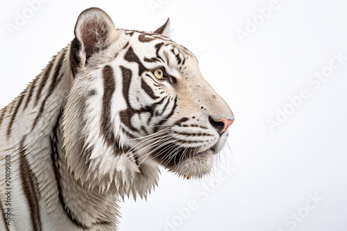 © Laser Eagle, Fototapeta premium White Tiger close-up portrait on a white background.