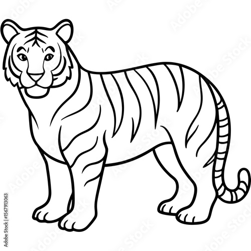© MdBabul, Naklejka premium White Tiger Silhouette Linear Animal Art Design