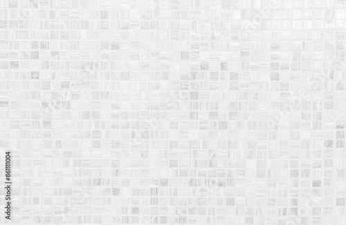 Fototapeta premium White tile wall background bathroom texture. Ceramic brick wall and floor tiles mosaic background in design pattern bathroom and kitchen clean.