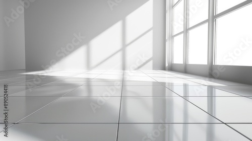 © wiwat apisithpinyo, Obraz premium White tiled floor with window and sunlight.