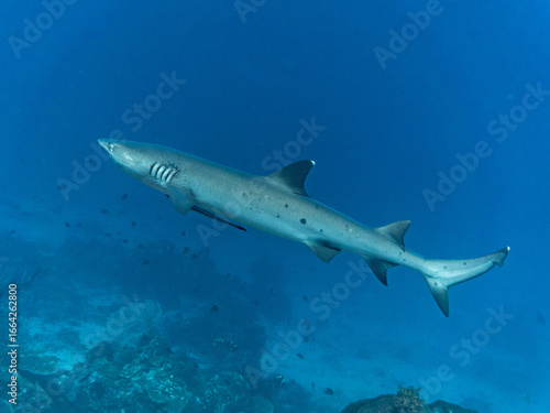 © Wildiaries, Fototapeta premium White-tipped Reef Shark swimming past