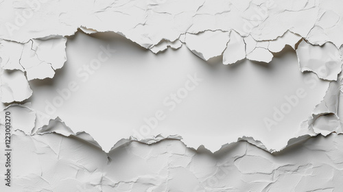 Fototapeta premium White torn wall with a circular hole in the middle exposing the interior...