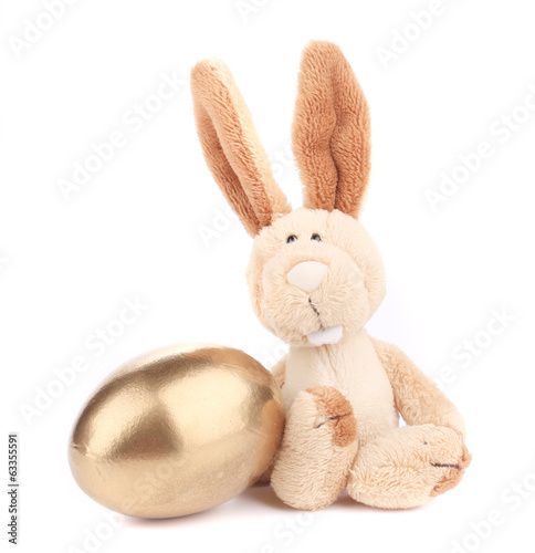 Obraz premium White toy rabbit with golden egg.