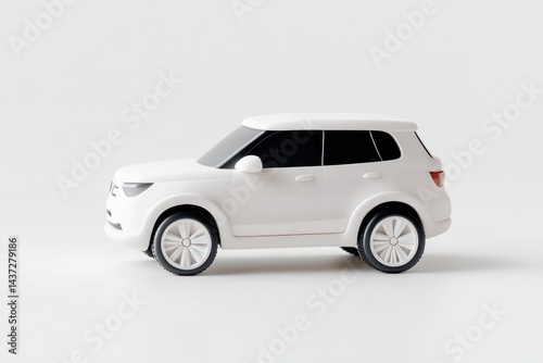 © tugkiara, Fototapeta premium White toy SUV on plain background. Detailed model of a modern SUV, side view, simple and clean design