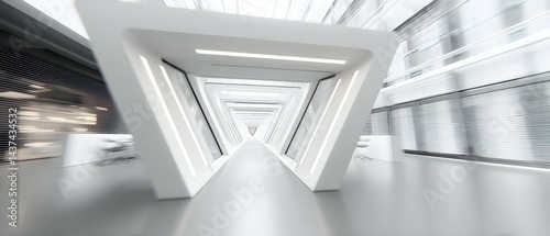 © Koplexs-Stock, Obraz premium White triangular hallway with blurred motion effect creates a sense of depth.