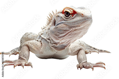 Obraz premium White Tuatara isolated on white background, transparent background, iguana