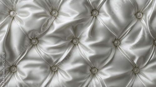 Fototapeta premium White Tufted Satin Fabric Texture with Pearl Buttons