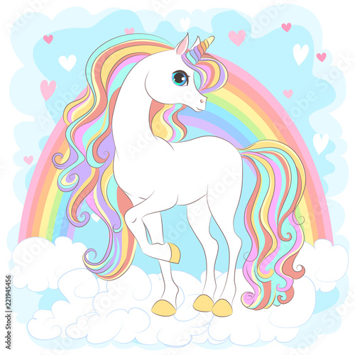 © SveslaTasla, Fototapeta premium White Unicorn with rainbow hair
