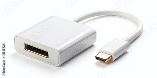 Fototapeta premium White USB-C to HDMI Adapter on Clean White Background - High-Resolution Stock Photo
