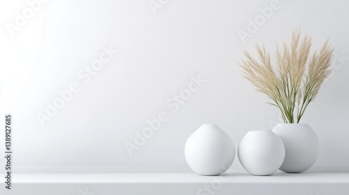 Fototapeta premium White Vases with Pampas Grass Minimalist Clean Style High-Resolution Lighting...
