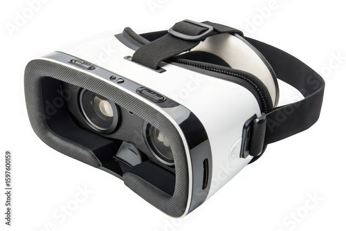 Fototapeta premium White virtual reality headset with black straps isolated on transparent...