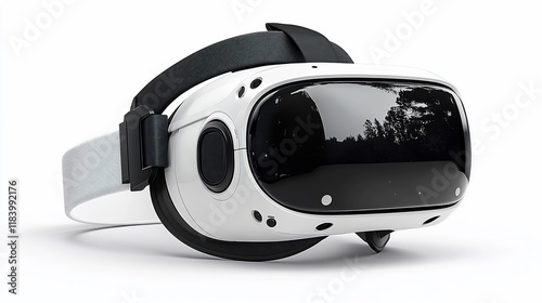 Fototapeta premium White VR headset, forest reflection, studio shot, virtual reality