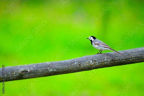 © Vidady, Obraz premium White Wagtail Bird Sitting on Perch