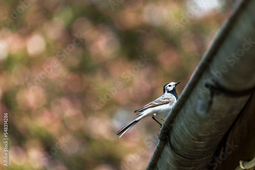 © Neils, Naklejka premium White Wagtail, Motacilla alba, on house roof