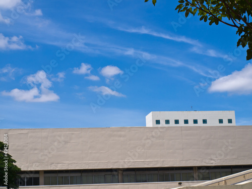 © gururugu, Obraz premium White wall and blue sky