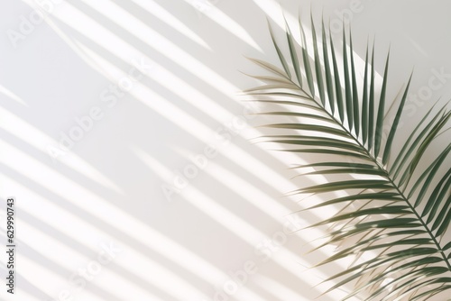 © Cherstva, Obraz premium White wall in room background with palm leaves and soft shadow. Empty surface with copy space minimal beach tropic concept