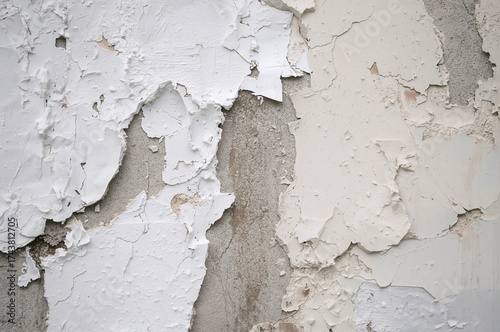 © AkuAku, Obraz premium White wall surface affected by moisture damage