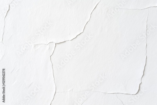 © Vadym, Obraz premium White wall with cracks. Simple surface texture. Light gray color background. Abstract design. Ideal for background material. Elegant blank copy space. Perfect for various creative projects like
