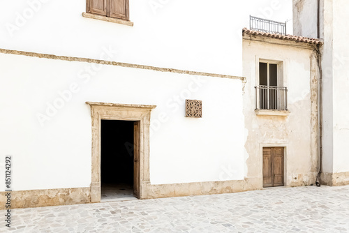 © Rysak, Fototapeta premium White Wall with Open Door and Stone Floor