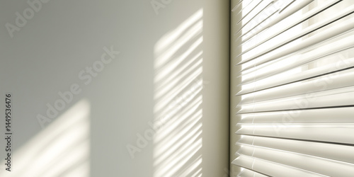 © agrus_aiart, Obraz premium White wall with striped sunlight from horizontal blinds