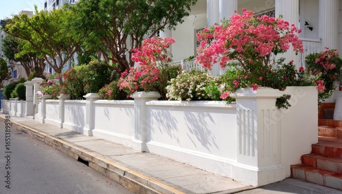 © Rijal, Fototapeta premium White-walled houses with pink flowers