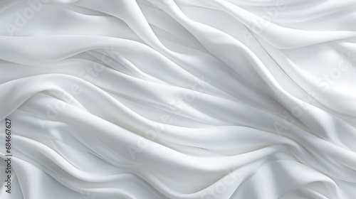 © Vibes, Naklejka premium White Wallpaper Background Template Plain Solid Color Beautiful Luxurious Elegant Fabric Textile Materials Soft Smooth Wrinkled Texture Flowing Line Curves 3D Illustration Theme Collection 16:9