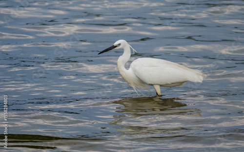 © bogdan vacarciuc, Fototapeta premium White water bird, with long legs - Egretta garzetta. Water bird in the natural environment.