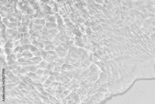 Obraz premium White water with ripples on the surface. Defocus blurred transparent white colored clear calm water surface texture with splashes and bubbles. Water waves with shining pattern texture background.