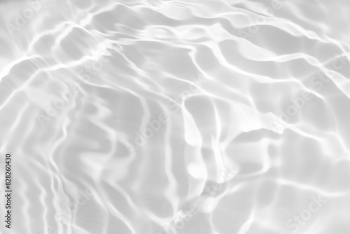 Obraz premium White water with ripples on the surface. Defocus blurred transparent white colored clear calm water surface texture with splashes and bubbles. Water waves with shining pattern texture background.