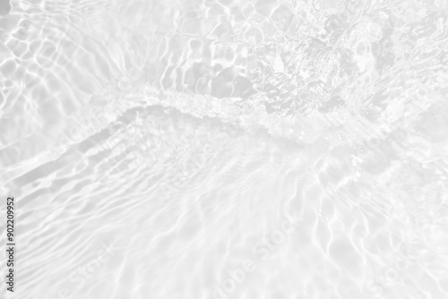 © Water 💧 Shining 📸, Obraz premium White water with ripples on the surface. Defocus blurred transparent white colored clear calm water surface texture with splashes and bubbles. Water waves with shining pattern texture background.