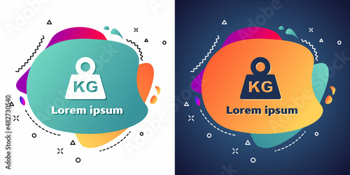 © Oksana, Naklejka premium White Weight icon isolated on white and blue background. Kilogram weight block for weight lifting and scale. Mass symbol. Abstract banner with liquid shapes. Vector