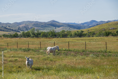 © Martina, Fototapeta premium White wild burros in a field