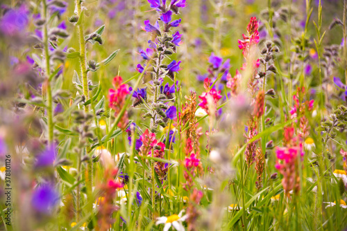 © Maresol, Fototapeta premium White wild flowers in sunlight in summer